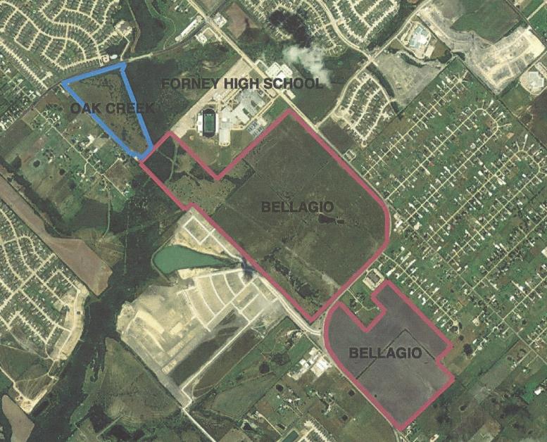 The first would be a development (Bellagio) between Forney High School and the S-curve on 741 going towards I-20. The extremely preliminary plans would have 1100 homes and 600 multi-family (MF) units, along with a 2 acre lagoon. The lagoon would be open to the public for a fee ($25-30 / person) and to home-owners for free. Some portion of the MF might be available for overnight rentals (like a hotel) and renters would also have access. Some portions of the area would be rentable for events, small pools, a splash pad, a lazy river and a zip-line might be included. This is similar to other lagoons in the state, such as Balmoral. The lagoon is excavated, lined with a polymer coating, filled with potable water. An automated sweeper would roam the bottom of the 7 - 9 ft. deep water, cleaning the floor. White sand would line the area around the water. There could be restaurants in the development.
